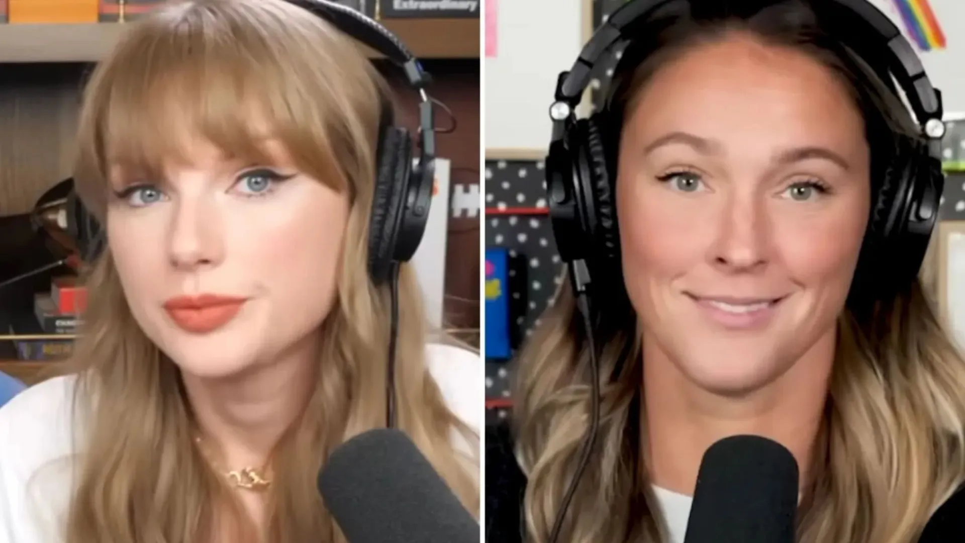 Rumors spread that Taylor Swift and Kylie Kelce would join the Kelce brothers on New Heights. The actual guests? Erin Andrews and Charissa Thompson. Here’s the full story behind the tease and reveal.